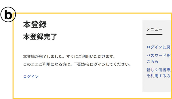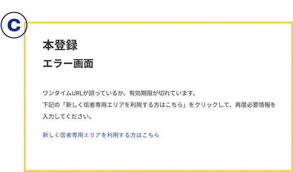 ⓒ「本登録」画面で、「エラー画面」になった場合は、手順②に戻って、最初からお手続きください。