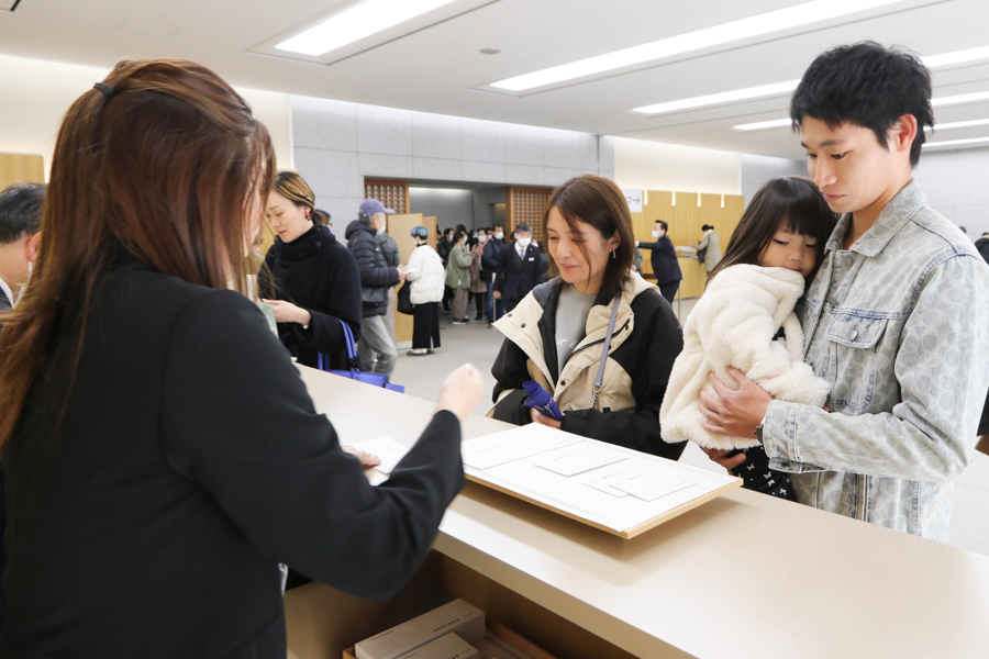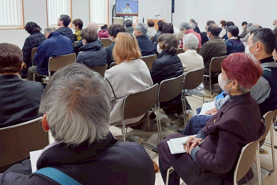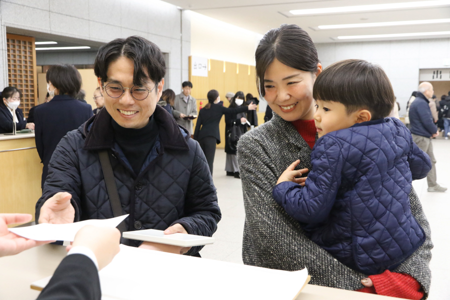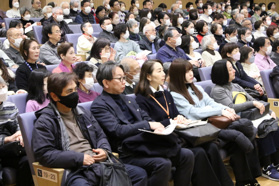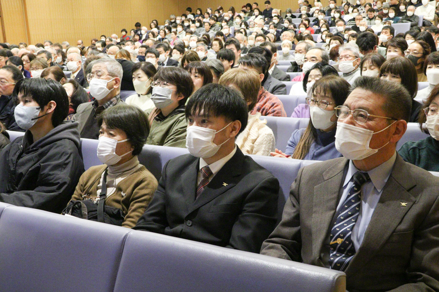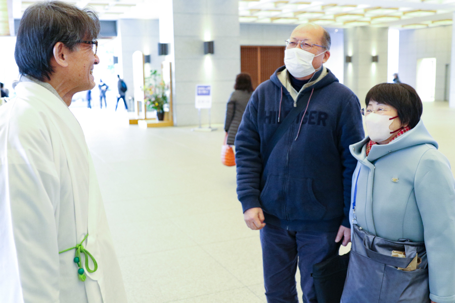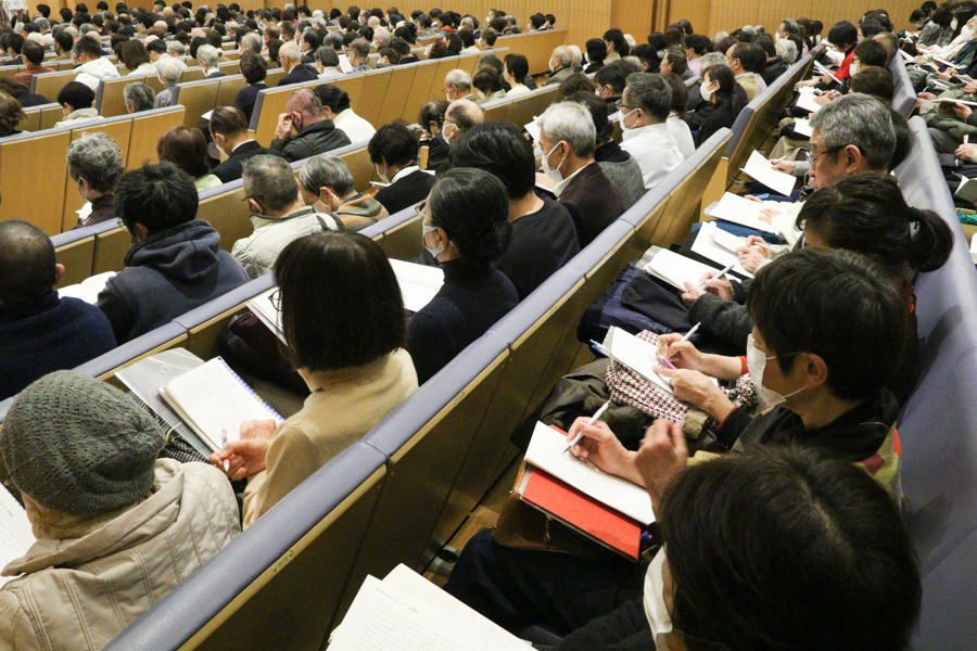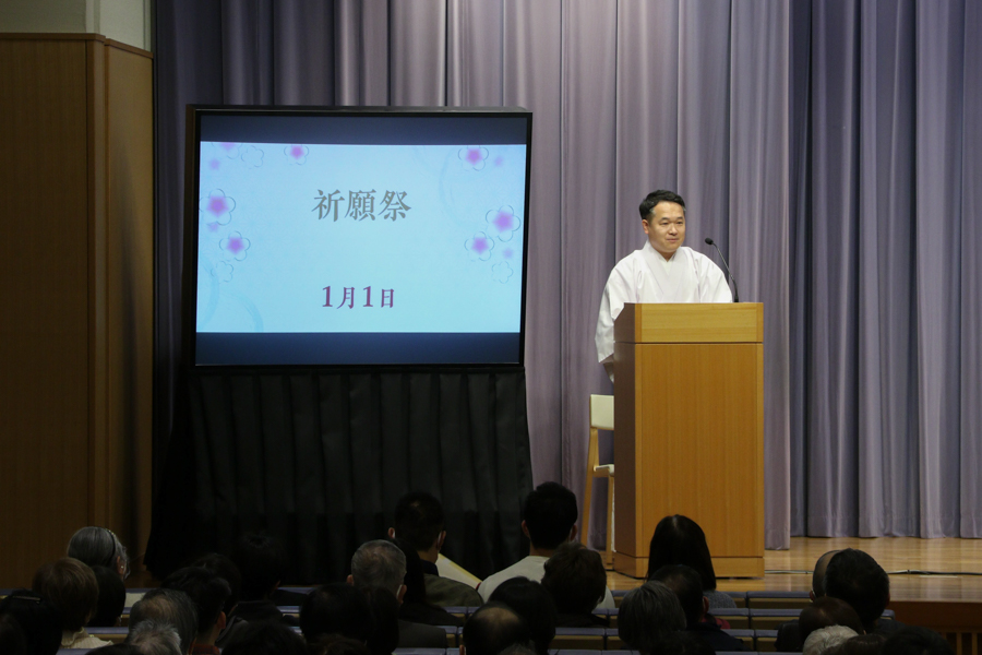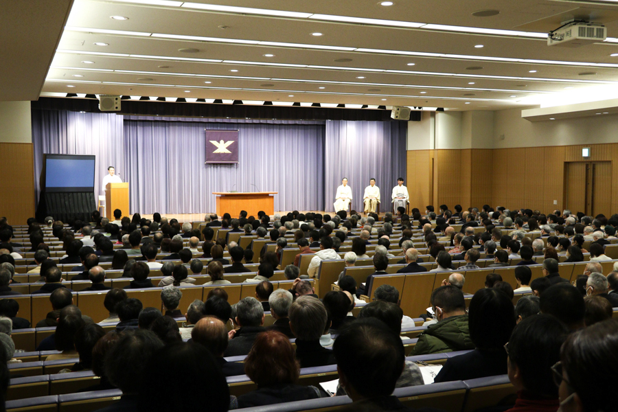 一人一人を仕合せ、幸福へと導く救いの手だて、「希望の光」が開かれた昭和62年11月15日、「聖日」。今年は、そこを起点に、聖日40年の節目の年です。人々を救う力がいや増し続けているこの時に、仕合せを手にするために必要な心を、どこまで磨き上げられるかは自分次第。とりわけ、ことし意識したいことは何か…。一年の指針をつかむために、多くの人々が『友輪』を大切そうに携えて「祈願祭」へ。ひと言も聞き漏らすまいと、神主教会長先生、教主正使者供丸光先生、神奉仕供丸清先生のお話に耳を傾けました。