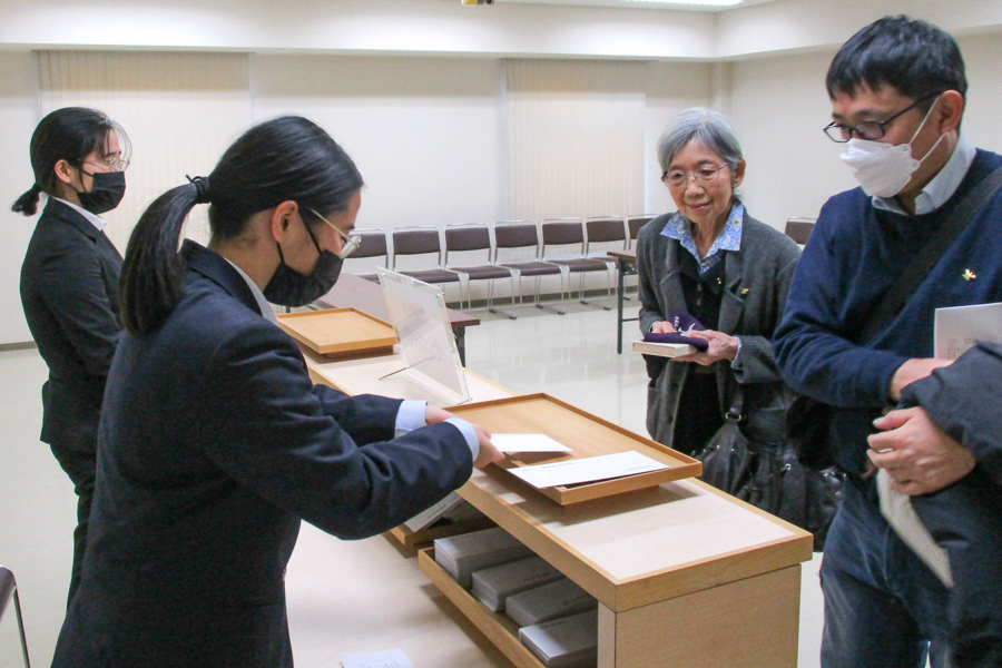 神奉仕供丸清先生と、神主教会長先生がお話しくださったのは、「学び」と「祈願」の重要性です。「心」を守ってくださる神にどれほど力があっても、私たちの「祈願」がずれていては、魚屋でキャベツを求めるようなもの。せっかくの努力も、報われなくなってしまいます。しかし、“人生の羅針盤”である「教え」を学び、「祈願」しながら自身の心のありようを修正すれば、生き方が変わり、仕合せを必ず手にできます。その時、決して欠かせないものが、神との橋渡しとなる「御神体」です。身近な例えを交えたお話に、出席した各人が深くうなずいていました。