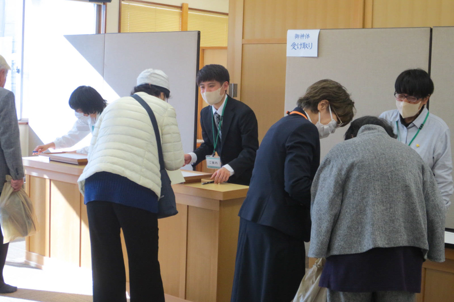 感情に流されることなく、生き方を高めていくには、神のお力がどうしても必要です。分魂である「御神体」を通して祈願するから、神に思いが届きます。ことしも、朝夕、事有るごとに祈願し、人たる人の感じ方、考え方を身に修めていこうと、誰もが丁重にお預かりしています。