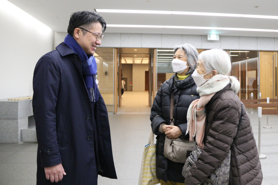 式典終了後、家族や仲間と笑顔を見せる出席者たち。“ことしの指針”をつかみ取り、「一日一日、悔いなく歩み抜く」という希望にあふれています。