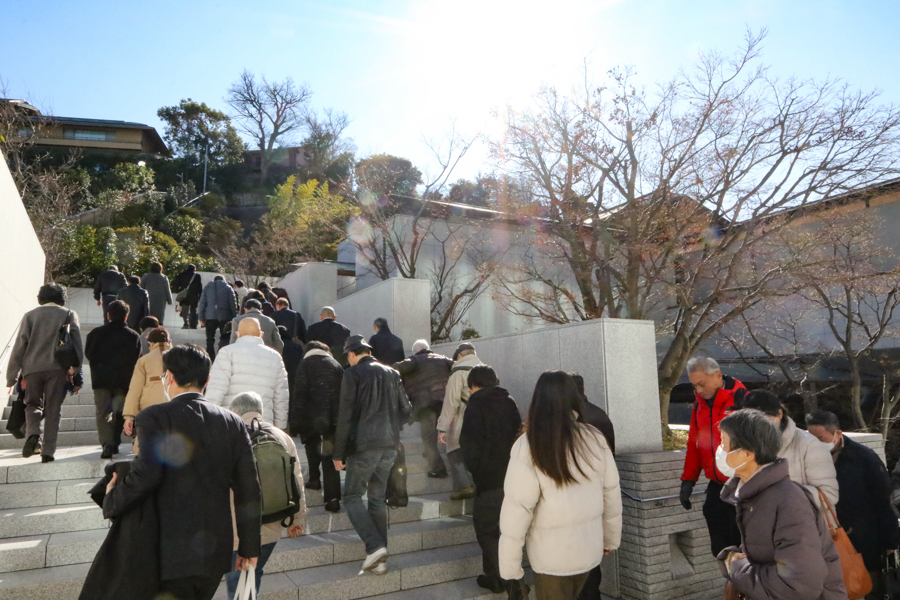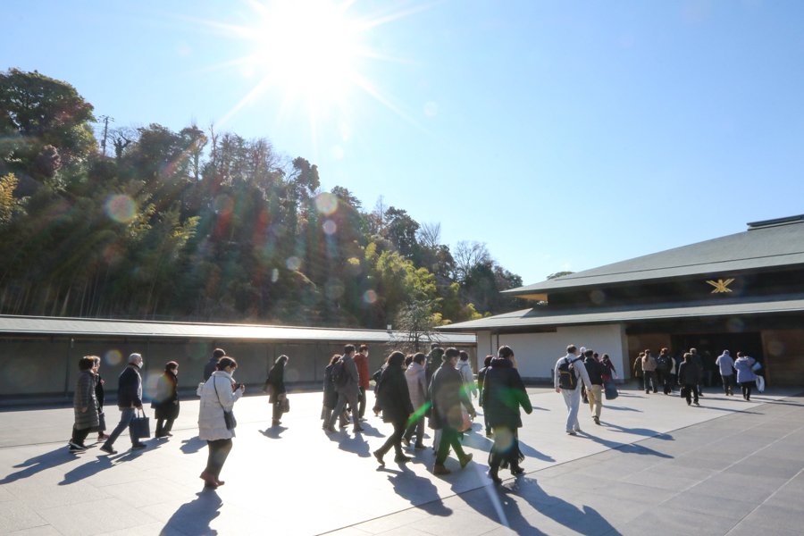 新年の始まりに当たり、大勢の人たちが神総本部を訪れています。「家族そろって、新たな年を迎えられた御礼を神へ…」「教えに生きて、悔いのない一年を歩めるように…」。すがすがしい空気が満ちた神殿で、それぞれが感謝と誓いを胸に、神にご挨拶。聖日40年の幕開けです。