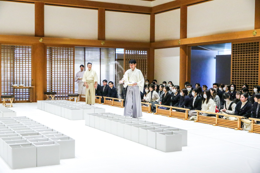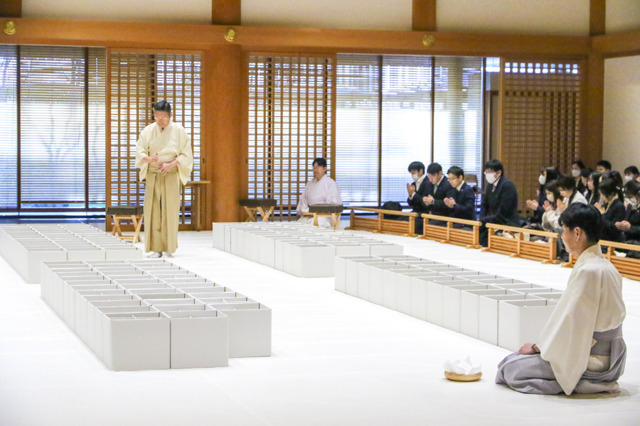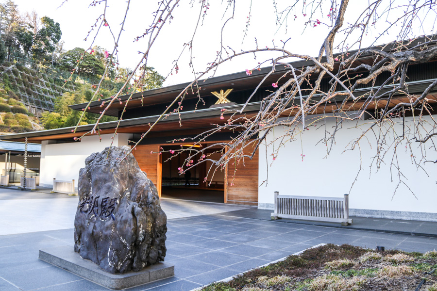 「清礼の儀」に合わせるように、梅の花がほころび始めた光明殿
