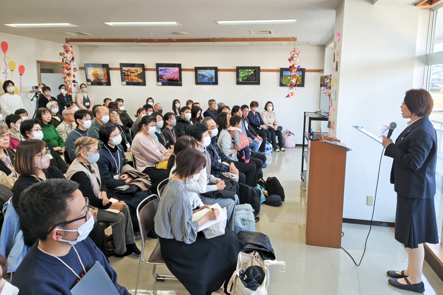 冒頭で、館長が開所までの歩みを紹介。偉光会館が建つのは、救われた信者の真心がこもる土地。“今”につながる足跡に感謝があふれて