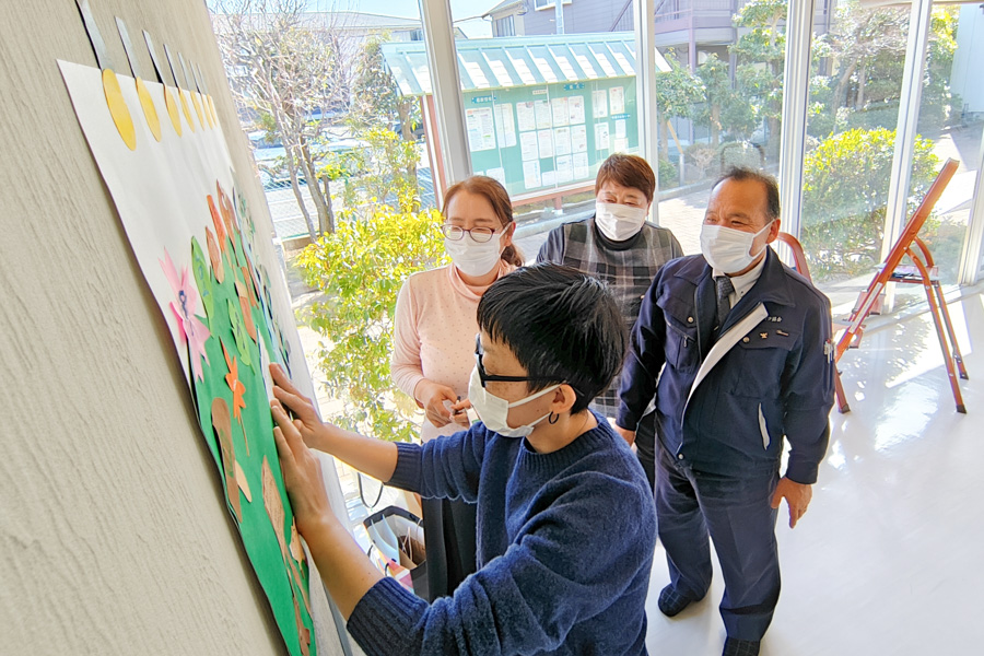 「お迎え掲示を作る中で、『自分は意外と思いが強い』と気が付きました。仲間と“調和”を意識して、若い人や、遠慮しちゃう人の意見にも耳を傾けたら、想像以上にアイデアが出てきたんです! きょう、これほど皆さんに喜んでいただけたのは、みんなの力。本当にうれしかったです」。