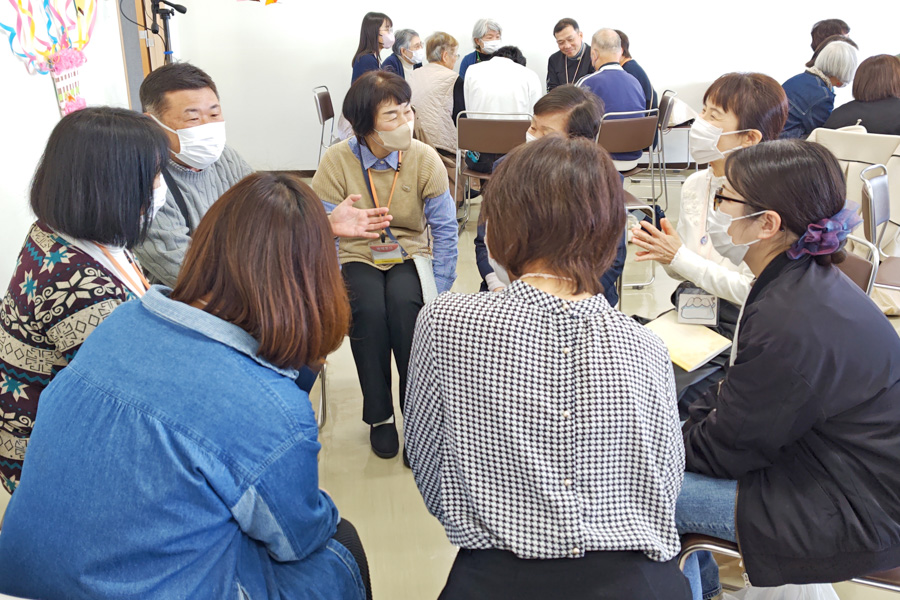 続く「触れ合いタイム」では、くじ引きによるグループで語り合い。緊張気味だった人も、仲間の温かさに思わず笑顔。「趣味はゴルフで…」「私もです!」。 “縁”を感じる一幕が、あちらこちらで