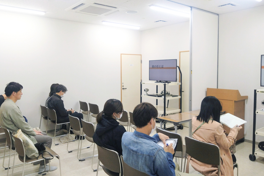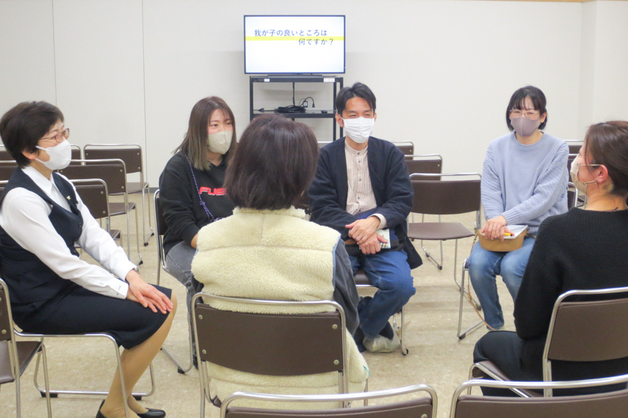 「家庭のベースをつくるのは親。大きな責任があります」。担当職員の言葉に、真剣に耳を傾ける親御さんたち。「早く寝なさい!」「宿題はやったの!?」と口うるさく言っても、なかなか伝わらないのが、心の奥にある親の愛。子供が生意気な口を利いたときも、つい売り言葉に買い言葉。それでは、感情がぶつかるばかりです。どの家庭にも「あるある」の事例に、苦笑する姿も。