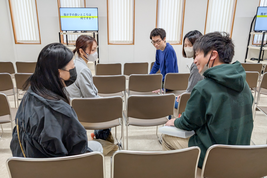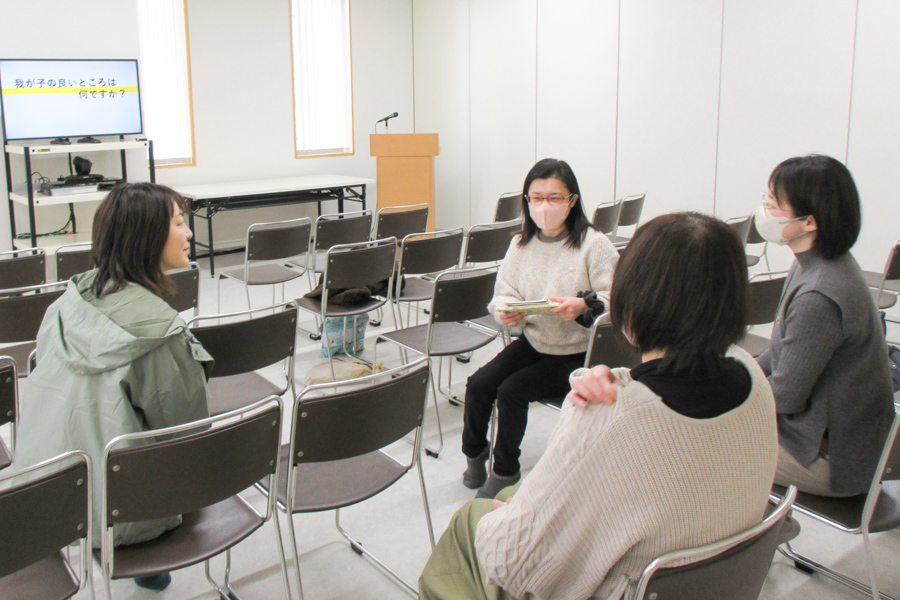 大切なポイントを確認するとともに、「我が子の良いところ」「子育ての悩み」といったテーマに沿って語り合う場も。良いことも、悪いことも、気楽に話せるのは、神の教えを学ぶ仲間同士だからこそ。